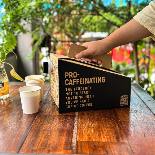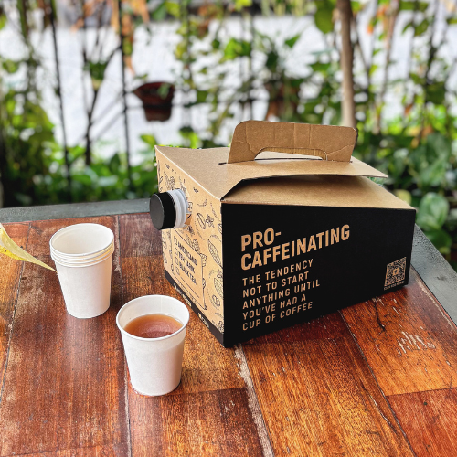 Designed for convenience, our drink dispenser box is perfect for serving both hot and chill drinks on the go. Made for hassle-free serving wherever you are. Perfect for gatherings, meetings tea break, or training sessions. Just pick your drink, pour, and keep everyone refreshed! It may not keep your coffee steaming hot, but it does a good job of keeping it warm within 1β2 hours.β Leak-proof spout for easy pouringβ Lightweight & portable with a sturdy handleβ Great for events, meetings, or road tripsβ Holds up to 3L , enough to share for 15-20 pax!β Best to consume within 1β2 hoursβ Comes with 20 white paper cups for your convenience